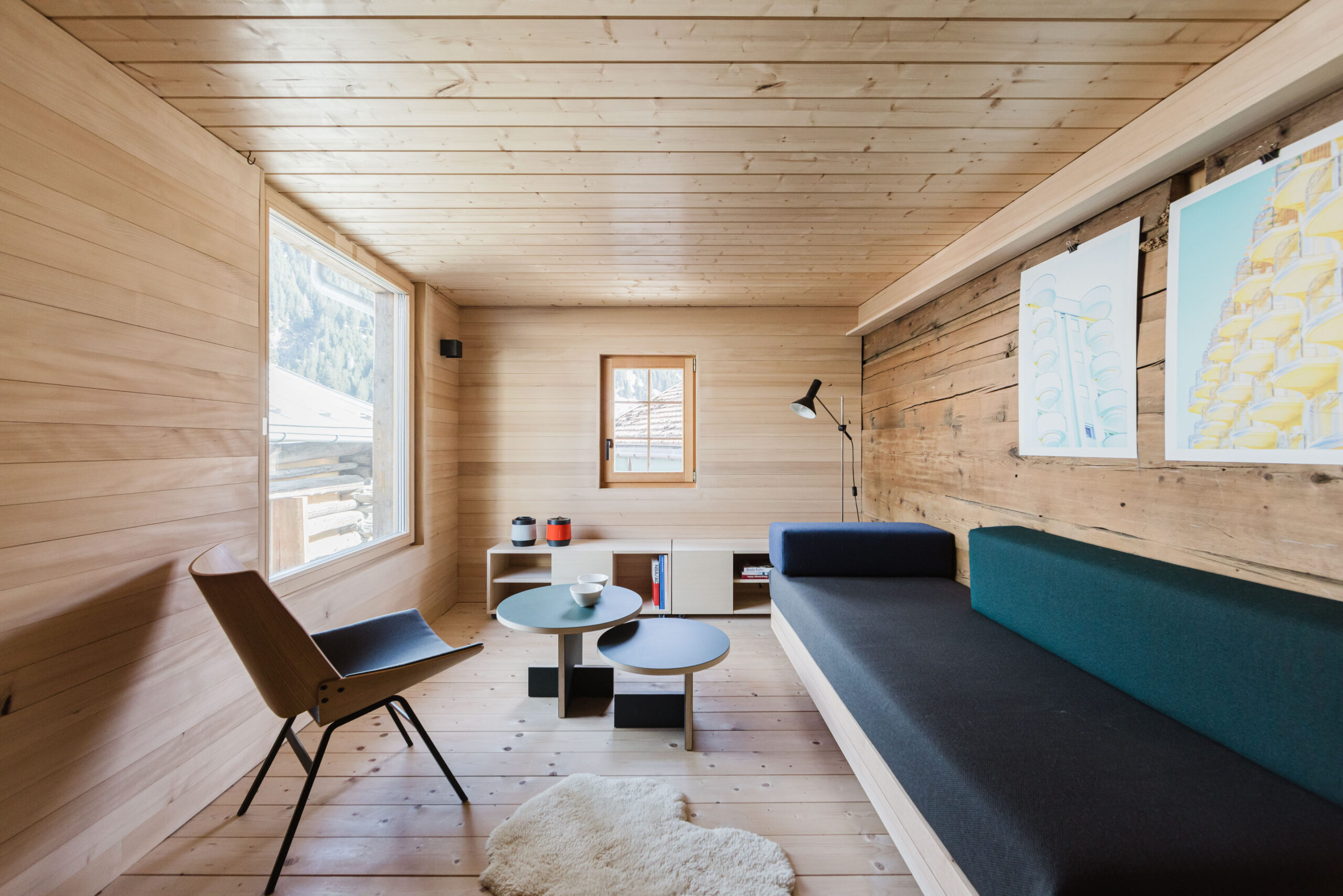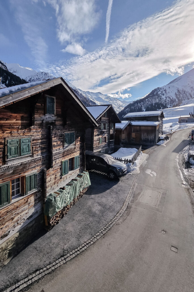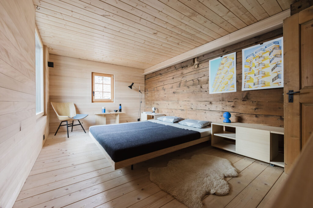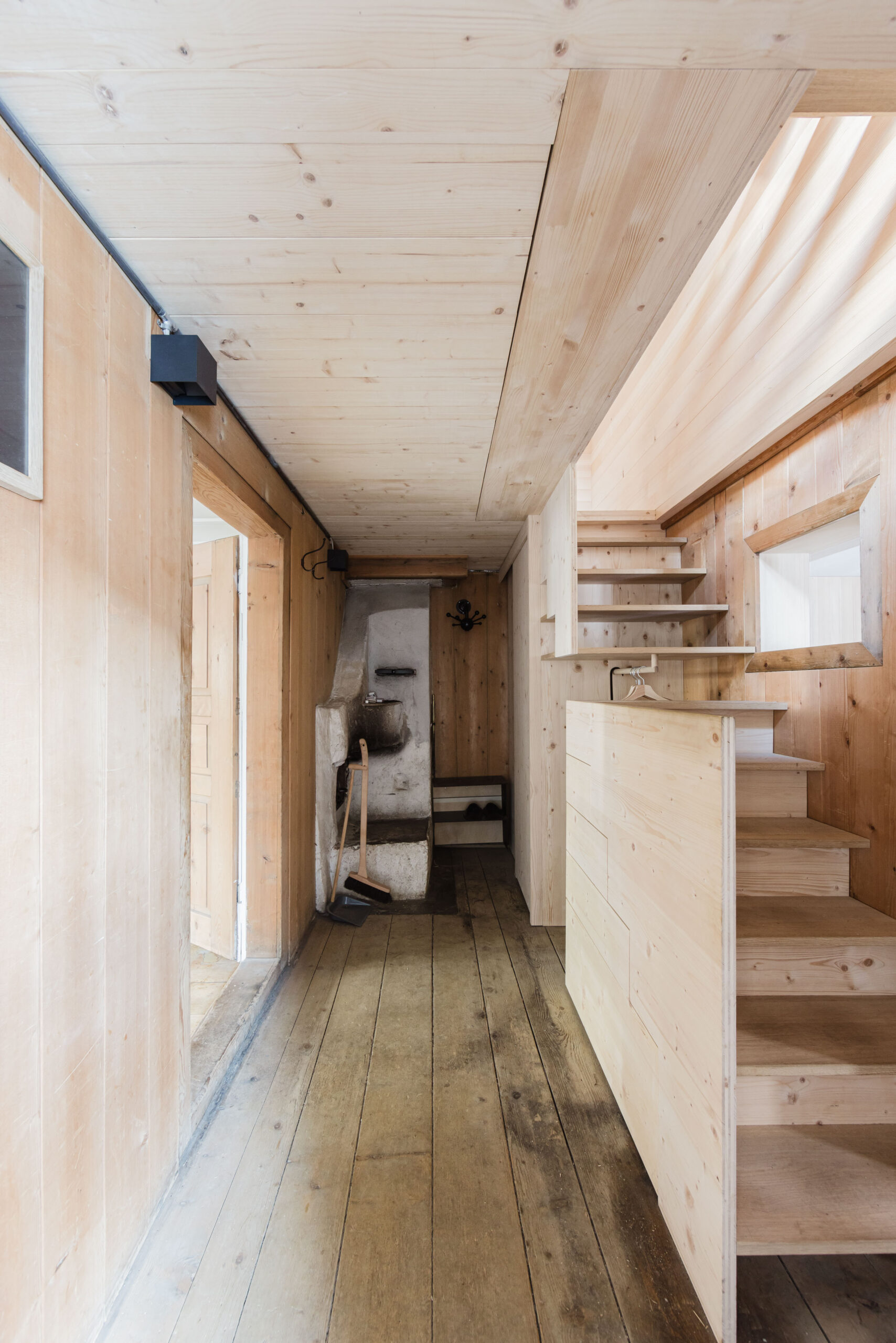 Vor einigen Jahren konnten wir die Liegenschaft erwerben und haben sie in der Folge selbst umgebaut. Dabei war es unser Anliegen den Charakter und das Wesen des traditionellen Holzbaus zu erhalten und ihn gleichzeitig mit sparsamen Eingriffen in die heutige Zeit zu bringen. Es sollte auch innen kein neues Haus werden. Die Grundstruktur des Gebäudes blieb unverändert, die Raumhöhen betragen nach dem Umbau in den meisten Zimmern knapp zwei Meter und eine neue Treppe ist etwas steiler, aber auch für Kinder gut begehbar.