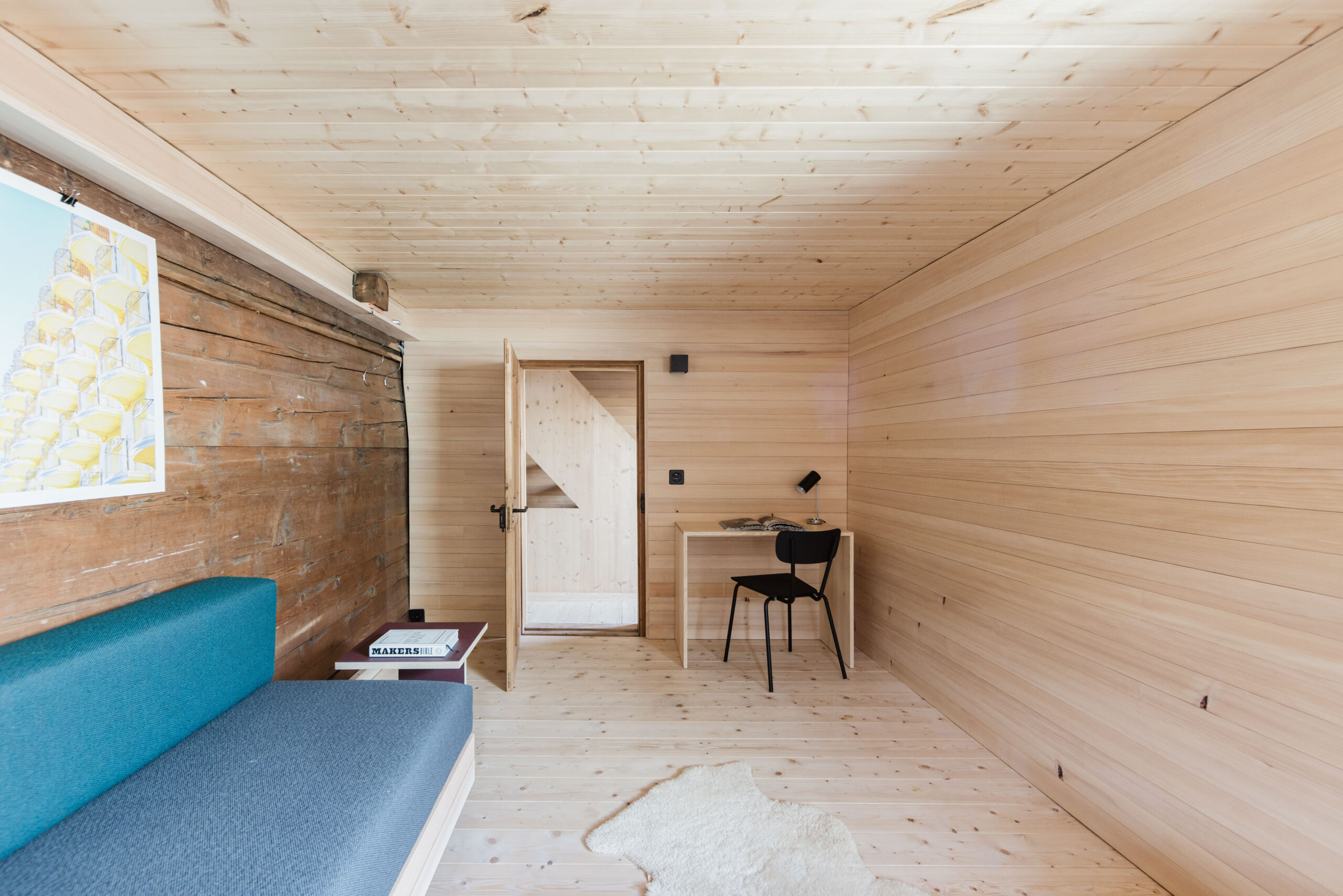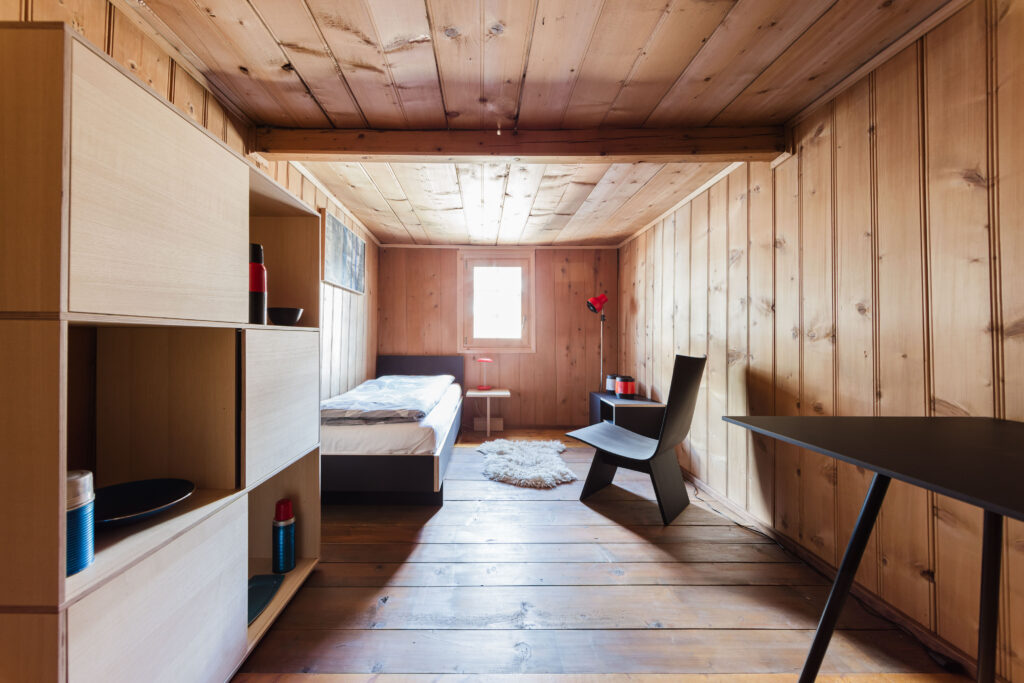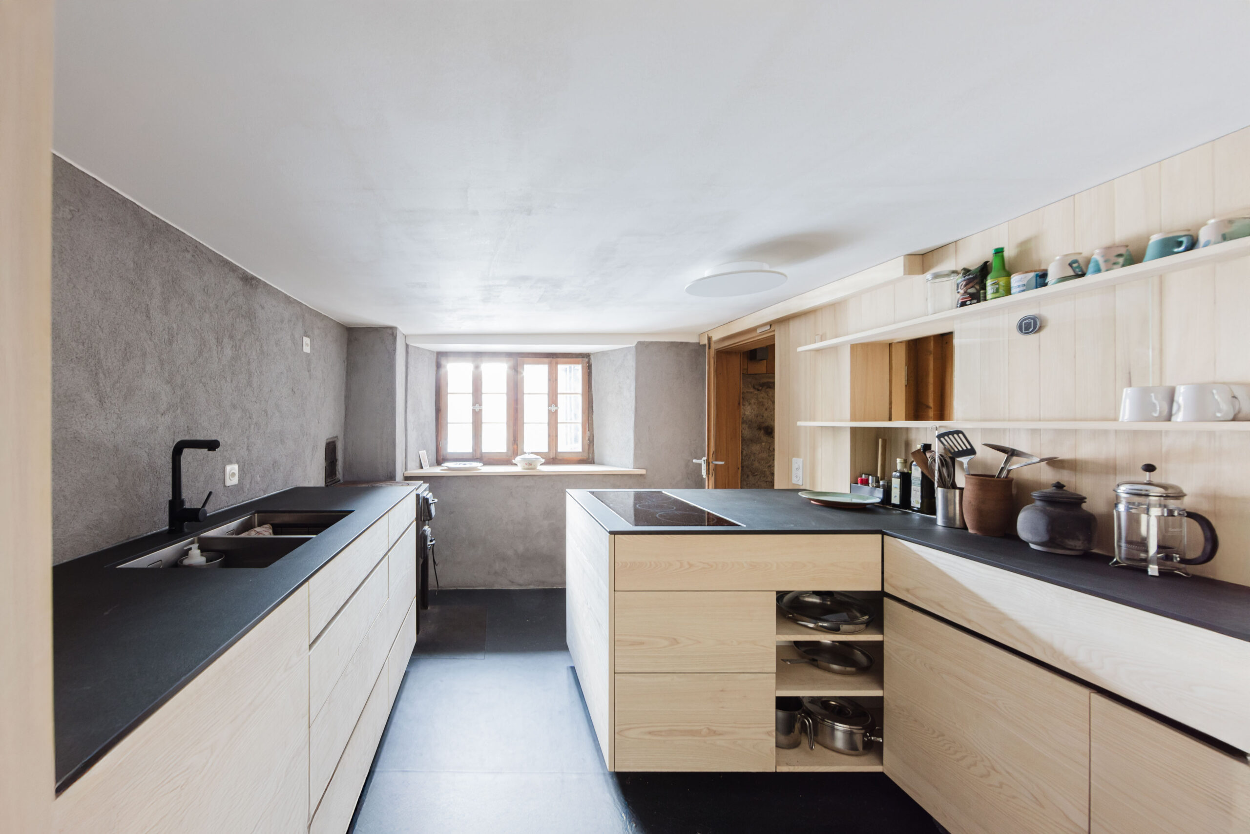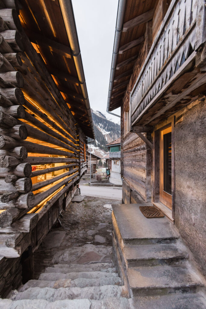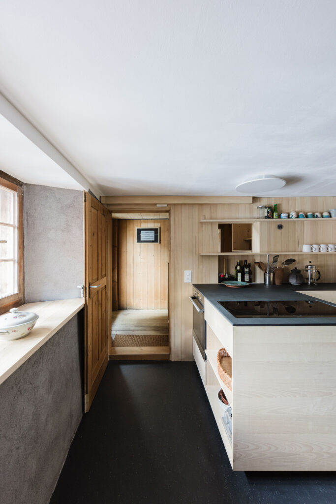 Vor einigen Jahren konnten wir die Liegenschaft erwerben und haben sie in der Folge selbst umgebaut. Dabei war es unser Anliegen den Charakter und das Wesen des traditionellen Holzbaus zu erhalten und ihn gleichzeitig mit sparsamen Eingriffen in die heutige Zeit zu bringen. Es sollte auch innen kein neues Haus werden. Die Grundstruktur des Gebäudes blieb unverändert, die Raumhöhen betragen nach dem Umbau in den meisten Zimmern knapp zwei Meter und eine neue Treppe ist etwas steiler, aber auch für Kinder gut begehbar.